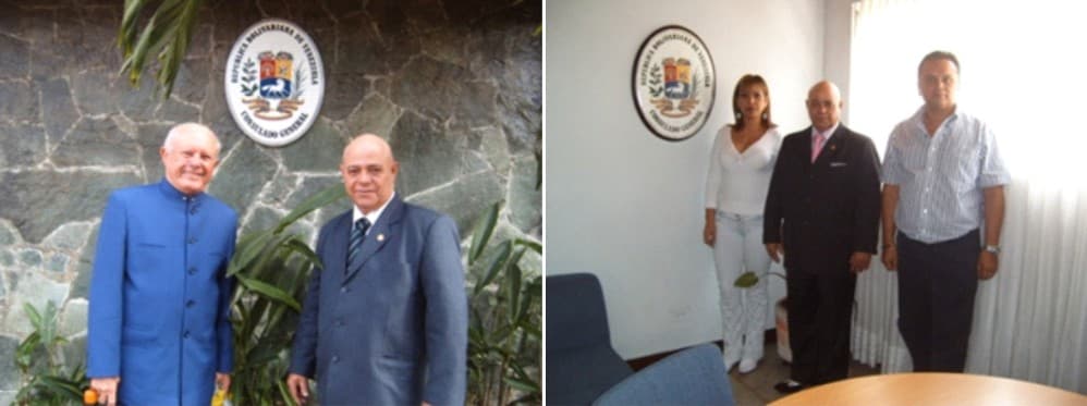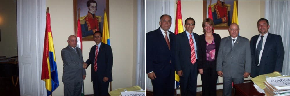 Visita del Presidente de FUNCIDDEL Prof. Ignacio Plaza al Consulado General de la República Bolivariana de Venezuela, recibido por el Prof. Felipe Rivero Cónsul General de dicho Consulado, reunión sobre el tema de los Derechos Humanos de los ciudadanos que utilizan los servicios consulares. Medellín Colombia.