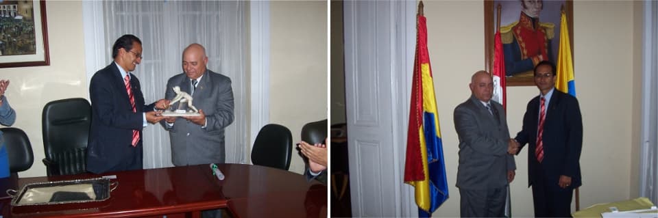 Presidente de la Fundación Funciddel Dr. Ignacio José Plaza en visita a la Alcaldía de Zipaquira atendido por el Ing. José Ediberto Caicedo Sastoque, tema tratado el Derecho Internacional y los Derechos Humanos. Así mismo se recibe de manos del Alcalde la Estatuilla en Sal de Zipaquira República de Colombia.
