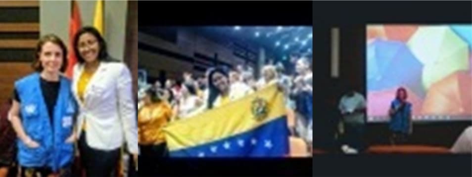 Nuestra Ministra para la República de Colombia Abogada Karelys Palmar Pacheco invitada por la representante del ACNUR en Colombia señora Alba al Conversatorio para migrantes venezolanos y retornados Universidad de la Costa Colombia.
